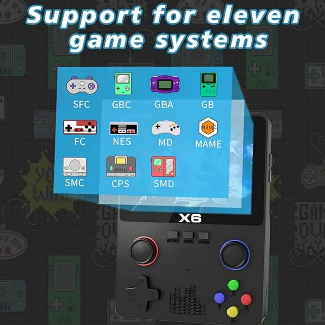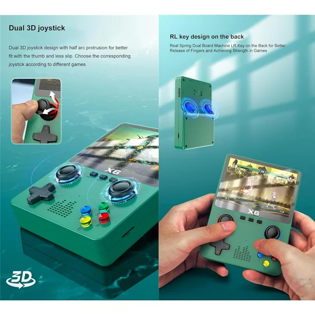 【صفحه نمایش OCA Full Fit 3.5 اینچی IPS】کنسول بازی دستی X6 جدید دارای صفحه نمایش رنگی لمینیت کامل 3.5 اینچی IPS با کیفیت بالا است، تصویر نرم و ظریف می تواند بهتر از چشم محافظت کند. 640 * 480 وضوح بالا، قابل مقایسه با صفحه نمایش تلفن همراه درجه خوب کیفیت تصویر واضح، زاویه دید گسترده، ضد خاکستری.