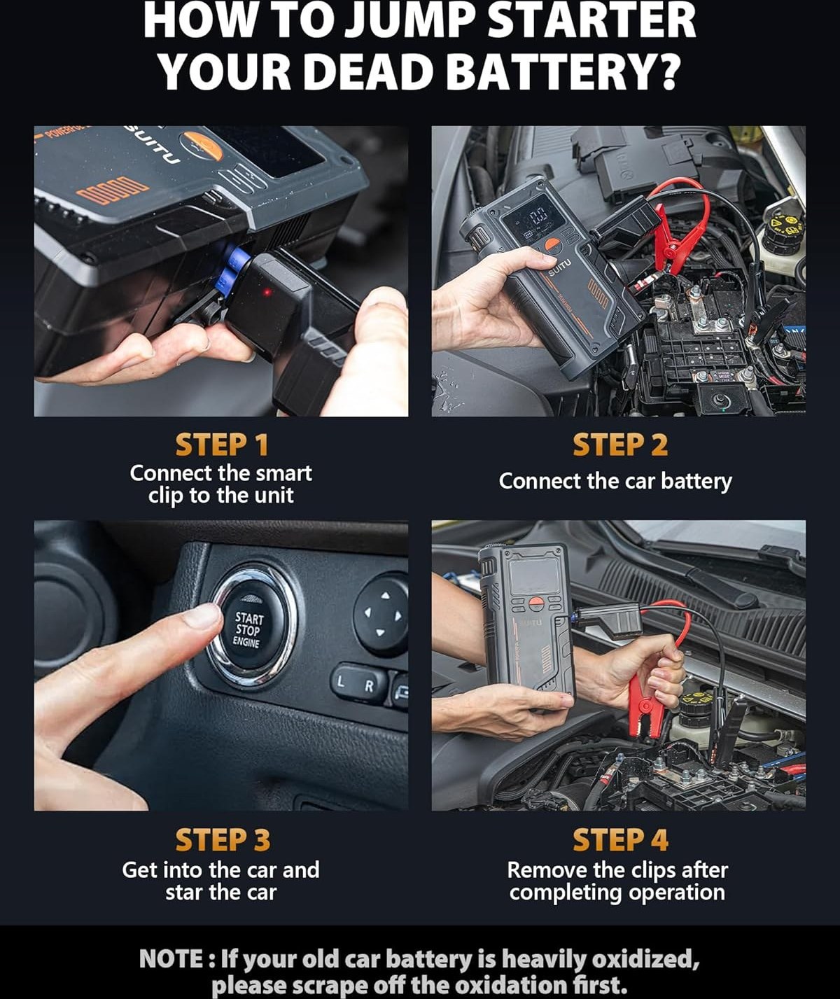 پمپ باد و جامپ استارتر همهکاره خودرو برند SUITU | st-9631